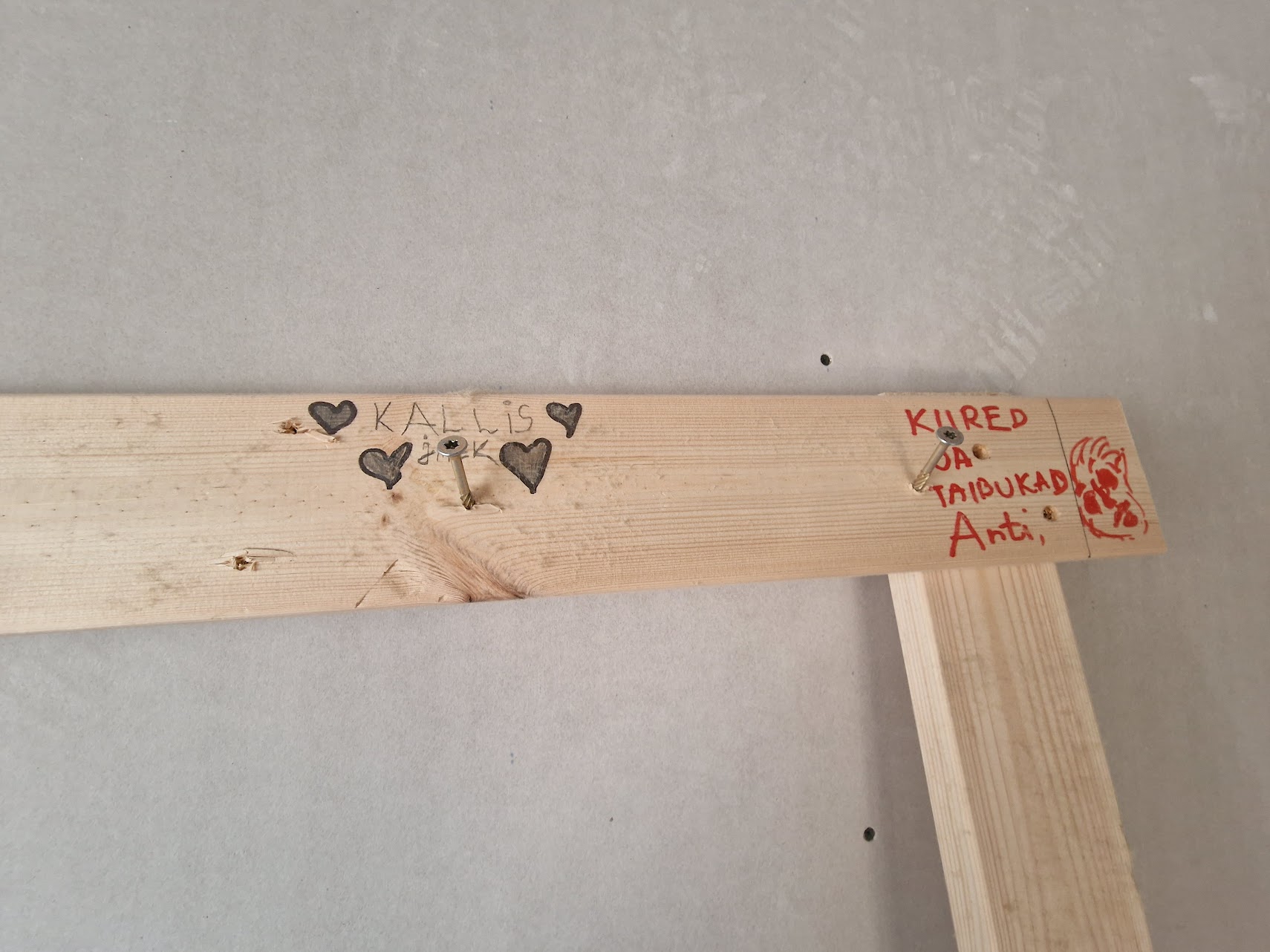 Tulevan kotimme rakentaminen oli edistynyt hyvin. Yläkertaan oli perustettu rakennusmiesten pukuhuone, jossa kukin sai ripustaa takkinsa itselleen nimikoituun naulaan. Kaikissa huoneissa oli jo lattia. Alakertaan oli ilmestynyt sähkötaulu, mutta paljon johtoa roikkui vielä spagettikeränä. Talo valmistuisi etuajassa. Tämä tuntui meistä hämmentävältä. On uskomaton tunne nähdä unelmiensa toteutuvan. Työuraa on silti vielä miltei kaksi vuotta jäljellä. Pekkakin joutui lykkäämään omaa eläköitymistään.